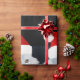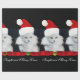 WHITE CHRISTMAS CAT,SANTA CLAUS HAT AND RED RIBBON WRAPPING PAPER
