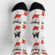 A white pattern-based sock design with cat illustrations having Christmas outfit and Santa Hats. Great for cosy Christmas moments.