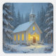 White Christmas Chapel In Winter Pines Square Sticker