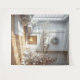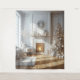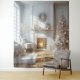 Immerse your audience in a tranquil winter retreat with this White Christmas Living Room Scene, where soft textures and glowing accents create a peaceful holiday ambiance. A white Christmas tree sparkles beside a glowing fireplace, its mantel adorned with candles, reindeer figurines, and a delicate wreath—all bathed in warm light from tall windows.