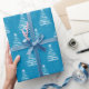 White star holiday tree in snowflakes with sparkling stars on aqua background.