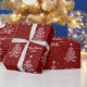 This Christmas wrapping paper features a white pine tree and white snow pattern with custom text on a red background (Changeable background colour). For more advanced customisation of this design, please click the "customise further" link.