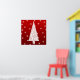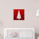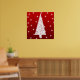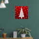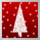A nice white Christmas tree design formed with circles, with white stars on a red background.