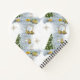Sparkling Gold & silver tree decorations surrounded by sage-green festive foliage with freshly fallen snow in a winter wonderland.