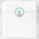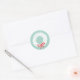 This small round sticker features a wintry white wreath on a mint green background. Makes a great closure sticker or seal to dress up your envelopes this holiday season.