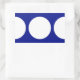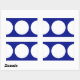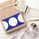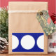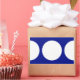 This bold geometric pattern features a white circle in the centre and two white half circles on the edges of a vibrant blue background.