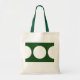 This bold geometric pattern features a white circle in the centre and two white half circles on the edges of a green background.