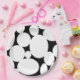 CLUSTER OF WHITE CIRCLES AND OVALS IN DIFFERENT SIZES WITH BLACK BACKGROUND