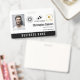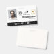 Office employee badge with a clean minimalist design in black and white. Add a photo of the employee along with name and profession. Personalise further with three logos and the name of the company.