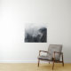 White clouds over the dark rocky mountains tapestry