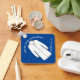 Elegant Doctor Physician White Coat Ceremony Monogrammed to celebrate and honour a physician or doctor in training. Stylish memory keepsake to honour someone a rite of passage where the Hippocratic Oath is recited at they the medical profession. Features a doctors coat, name, date and field of medical work. Blue background colour can be changed to colour of choice. Handy memory keepsake for this milestone achievement. Congratulations!