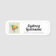 Narrow white name tag with two places for text and a company logo template. Include a name, using one or two lines. Add another line at the bottom to designate a position, or remove the sample text. Upload your logo to the square space provided and it will fit into that space. A thin, grey line border completes the simple, yet effective, design. Choose either a pin backing or magnetic. Remove all text to use as a dry erase name tag.