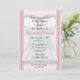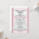 Bridal shower invitation with white lacy corset, pink and white lacy ribbon with hearts on heart pattern background. This makes a great invitation for lingerie or bachelorette parties. Invitations come with envelopes and your choice of paper.
