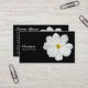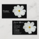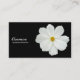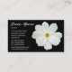 A business card with a white Cosmos photo motif. Business name etc on the front with other details on the reverse with the same motif and style.
