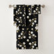 White Cotton Boll Stem Watercolour Pattern Black Bath Towel Set