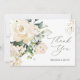 Elegant watercolor white cream roses and hydrangea Wedding Thank You card