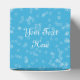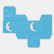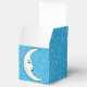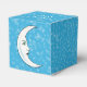 This party favour box is blue covered with tiny white open stars and a white crescent moon with an elegant face on the front panel. Customise your text on the top of the box with the template.