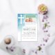 Enjoy this beautiful white cross and foil, Christening template, to add your baby's photo and all the text templates you'll need for your guests. Background is an abstract blue and teal watercolor.