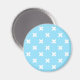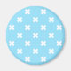 White cross stitches on baby blue magnet