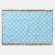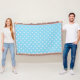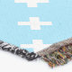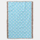 White cross stitches on baby blue throw blanket