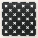 White cross stitches on black glass coaster