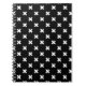 White cross stitches on black notebook