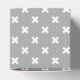 White cross stitches on grey favour box