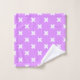 White cross stitches on lilac wash cloth