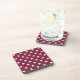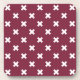 White cross stitches on mulberry coaster