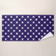 White cross stitches on navy blue bath towel
