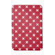 White cross stitches on red bath mat