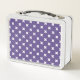 White cross stitches on ultra violet metal lunch box