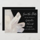 The classy White Crystals on Black Wedding Save the Date Announcement Card sets the tone for your marriage ceremony and reception. This elegant custom zen nuptial keep the date announcement features a photograph of a white rock quartz cluster mineral druzy geode specimen with a black background. Clear quartz is also known as the "master healer" and "stone of power" and is said to increase any energy or intention and makes a unique enhancement or addition to your wedding decor or theme.
