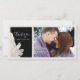 Send thoughts of appreciation and gratitude after your engagement party, bridal shower or marriage with the classy White Crystals on Black Wedding Thank You Photo Card. This elegant custom ethereal wedding thank you photocard features a close up photograph of a white rock quartz cluster mineral druzy geode specimen with black background. Clear quartz is also known as the "master healer" and "stone of power" and is said to increase any energy or intention and makes a unique enhancement or addition to your wedding decor or theme.