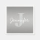White Cursive & Grey Monogram | Editable Colours Napkin