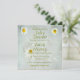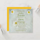 Several white daisies on a soft cotton white background. The text is white with golden yellow outline and a lighter green shadow as a fully customisable invitation to a baby shower for a mother to be.