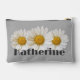 White Daisies Custom Name Grey Accessory Pouch
