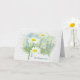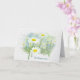 Close up of white daisies in a country meadow with watercolor frame for sympathy thank you.