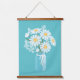 White Daisies Mason Jar on Teal Hanging Tapestry