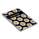A pattern of white daisies on black background with a template for first name.