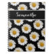White Daisies on Black with Custom Name Notebook
