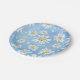 A lovely paper plate with white daisies on a blue watercolor look background. Plate also available with white centre.