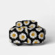 A pattern of pretty white and yellow daisies on black background with a monogram and a custom name in decorative script.
