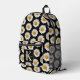 White Daisies Pattern Black Monogram Printed Backpack