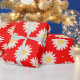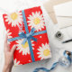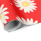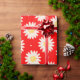 Bunch of daisies with yellow centres. Cute floral design with white dots. The design features daisies in cream colour on a red background. A daisy pattern for the girly girl that loves daisies. Great wrapping paper for sisters, friends, or girlfriends birthdays.