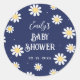 White Daisies Spring Summer Boy Baby Shower Classic Round Sticker