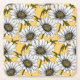 White daisies, wild flowers on yellow square paper coaster