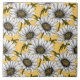 White daisies, wild flowers on yellow tile