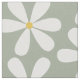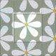 White daisies with yellow centers on moss gray fabric
