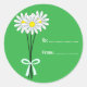 A gift tag sticker with a bouquet of white daisies on a green background. Flowers for your gifts and messages!